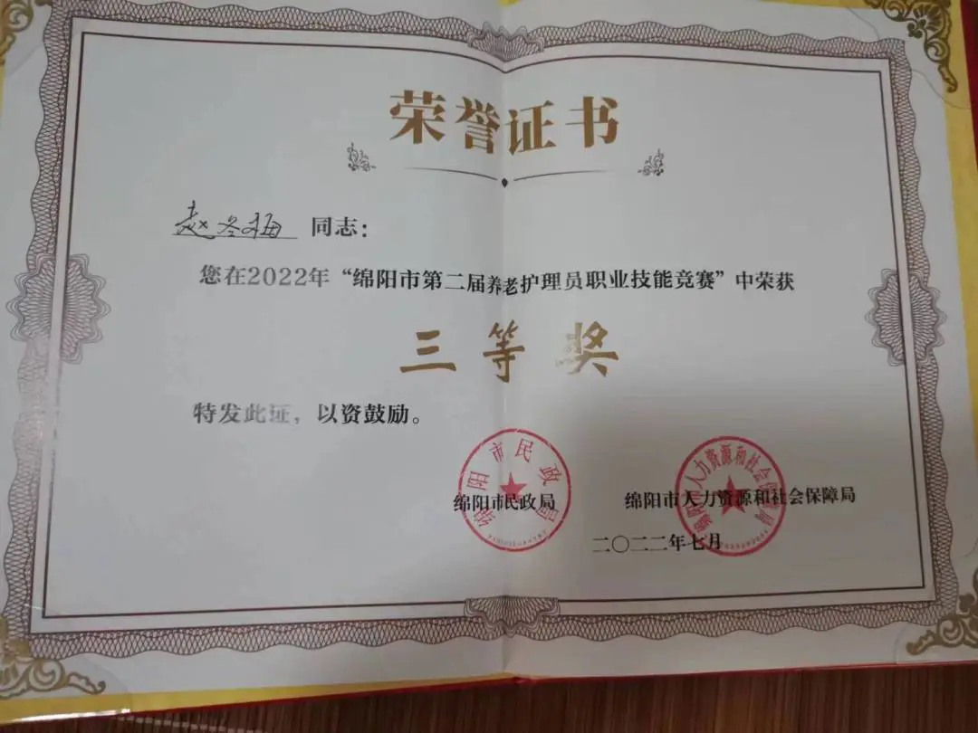 绵阳市第二届养老护理员职业技能比赛中,我院派出的两位天使没有辜负大家的期望,取得了团体二等奖、个人三等奖的好成绩,恭喜她们为益康争得了荣誉、也为自己的人生再添光彩。同时希望你们发扬成绩,不骄不躁,再接再厉,做出新的贡献。